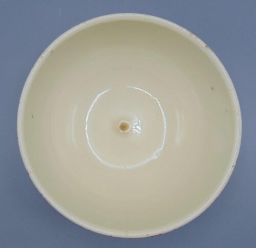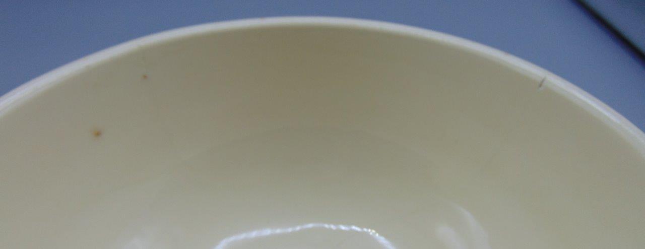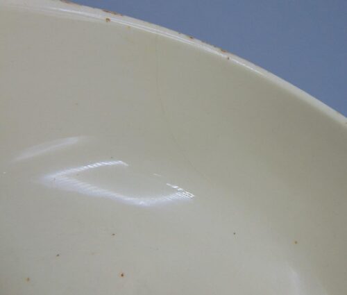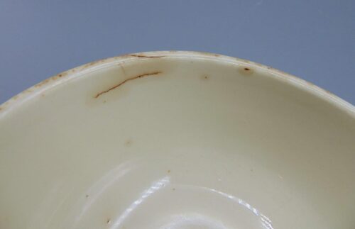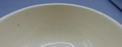Please inspect the photos to see the exact condition of this vintage pottery bowl including pin marks, glaze pops, hairline cracks and craze marks.