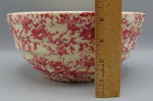 2 Vintage Primitive Spongeware Horizontal Ribbed Red/Pink Mixing/Dough Pottery Bowl Farmhouse Decor Maroon (Copy)