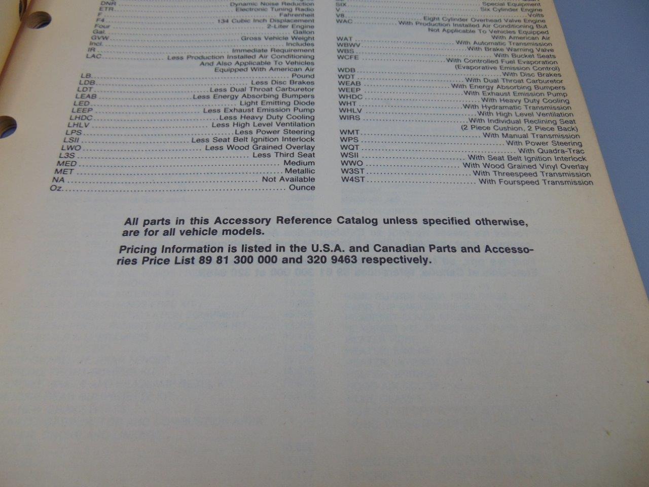 AMC Jeep Renault Accessory Reference Catalog October 1986