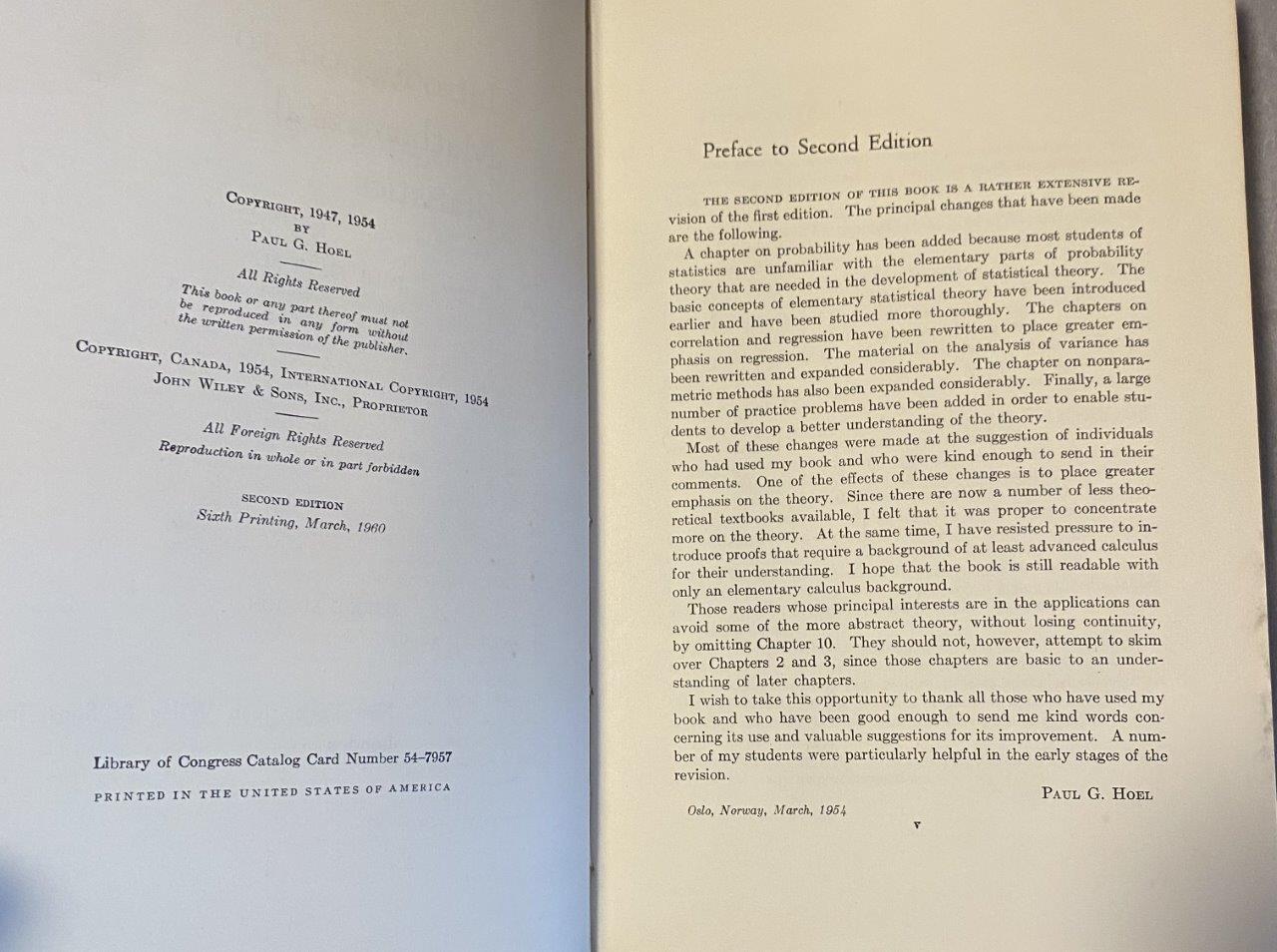 Introduction to Mathematical Statistics Hoel Wiley Series HC 1954 2nd Edition