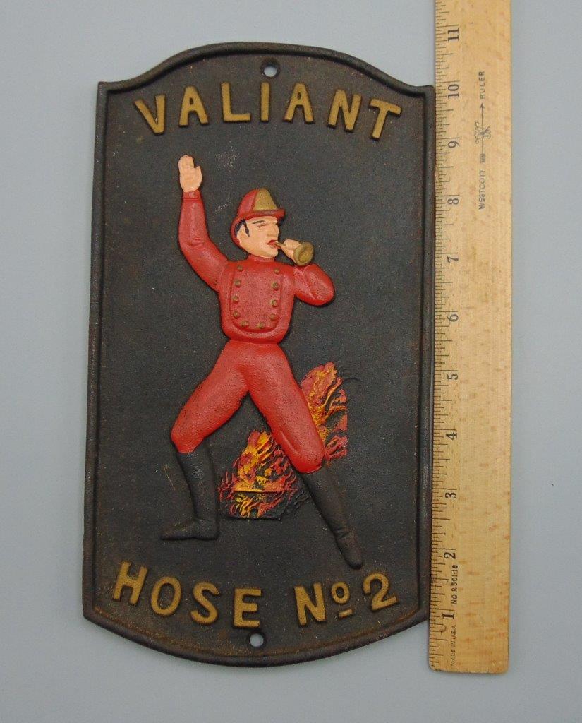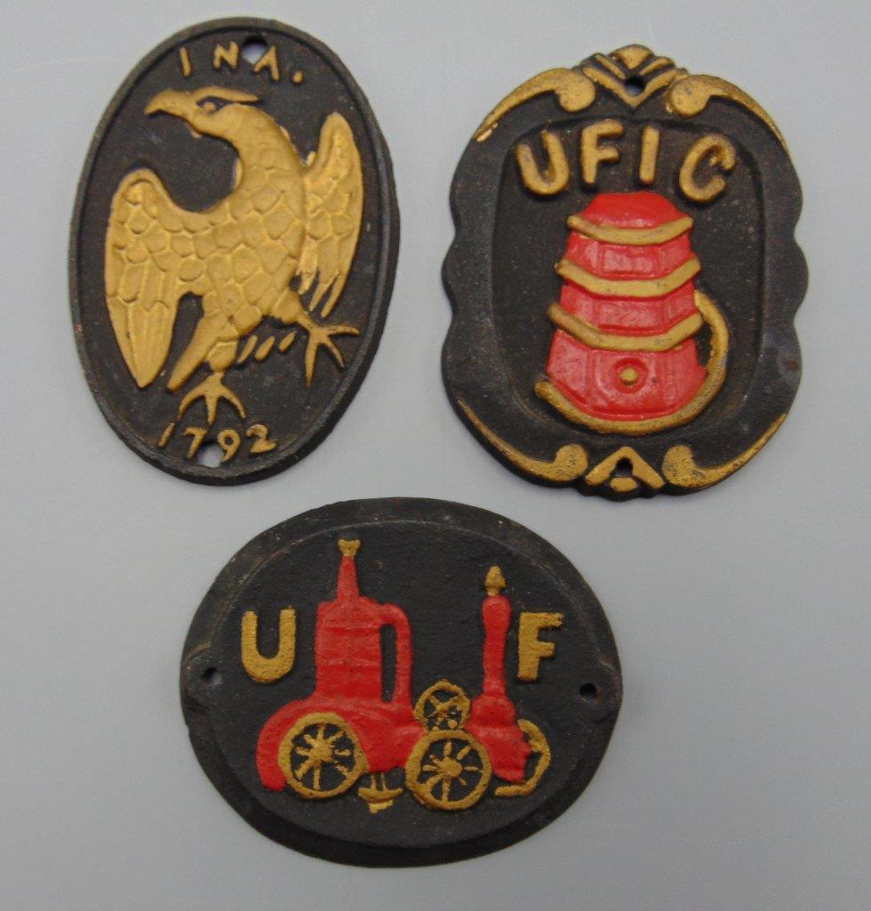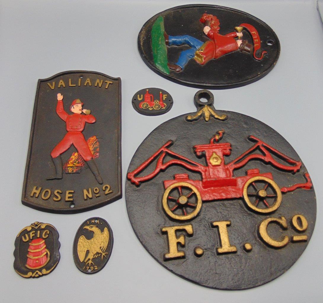 PWF and VMC Cast Iron Lot of Firemen’s Insurance Wall Plaques Valiant Hose No 2 Fireman UFIC